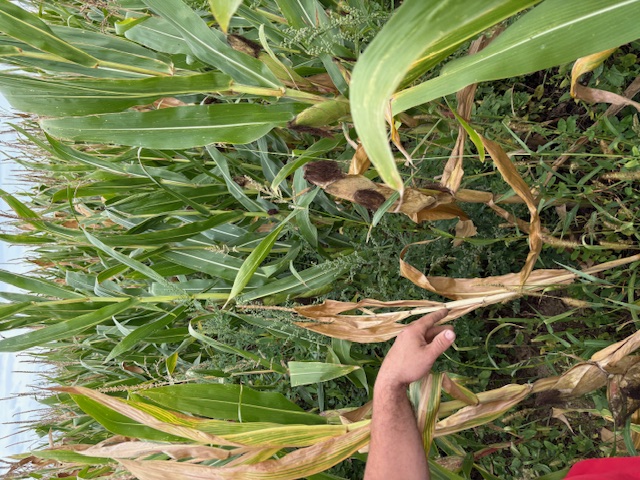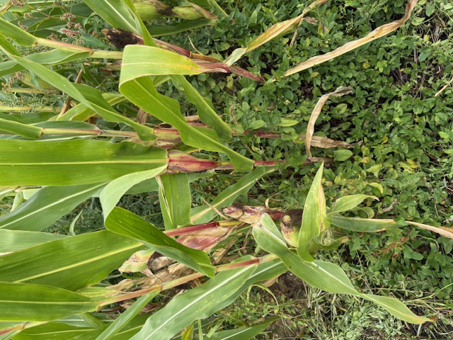 Rote Blätter, dann dürre Stauden, alles Bilder vom 01.09.25! Gleich neben LFL-Versuchsstandort Kösching.